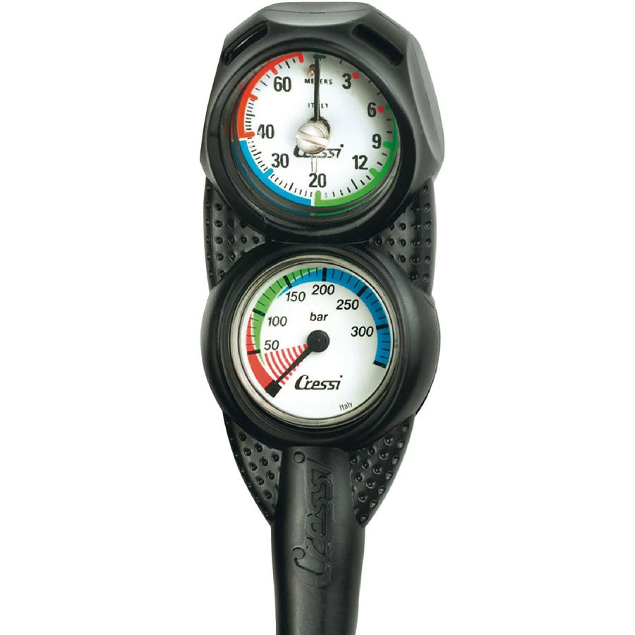 Mini Console 2 est une console aux dimensions réduites qui reçoit le mini manomètre Cressi et un nouveau petit profondimètre analogique.